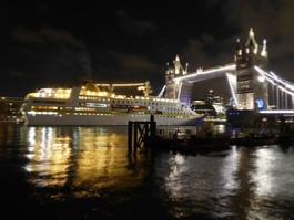 HAMBURG .22 Tower Bridge upper L:144x21m (473x70ft+) HAMBURG Tuesday 26 April 2022 23:22pm really dark when the Ship came past the 02 Dome, on it's way slowly to Tower Bridge. Lifting time was 00:15am This Ship most times in the  past arrives and departs in  the dark early hours, and  normally only stays a day Departure: 00:45am Wed 27th romagic .22m Night time shots tricky with moving target and focus on sparkly lights.