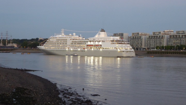 SILVER WHISPER .22 romagic .22 * Greenich Tier Terminal *Click a Photo Above   once Big, click Right    Arrow in corner >   to start Slide Show L:186x24.8m (610x81ft+) Wednesday 15th June 2022 Cruise ship arrives 02.17am at Greenwich Tier.  Staying 24 Hours leaving at  02.00 am Thursday. I didn't get it's arrival, but  did take some Photos late evening at Low Tide. Refueller boat was along  side.  Now getting dark   so these are the best pics  I could get SILVER WHISPER Last Here  18 May 2019