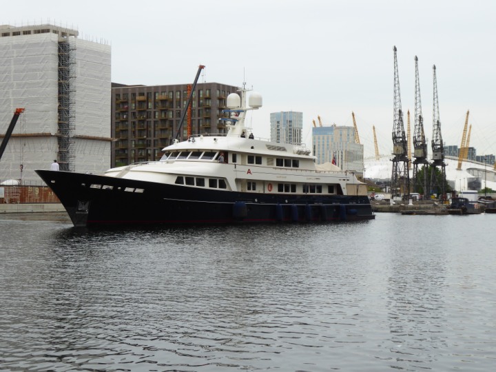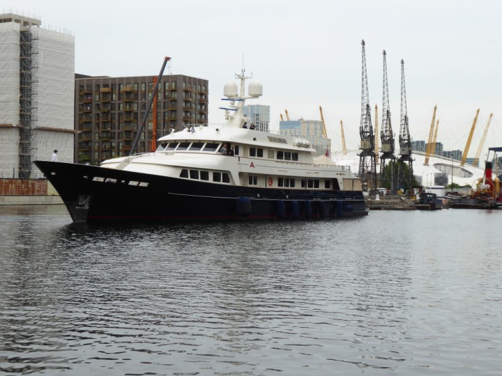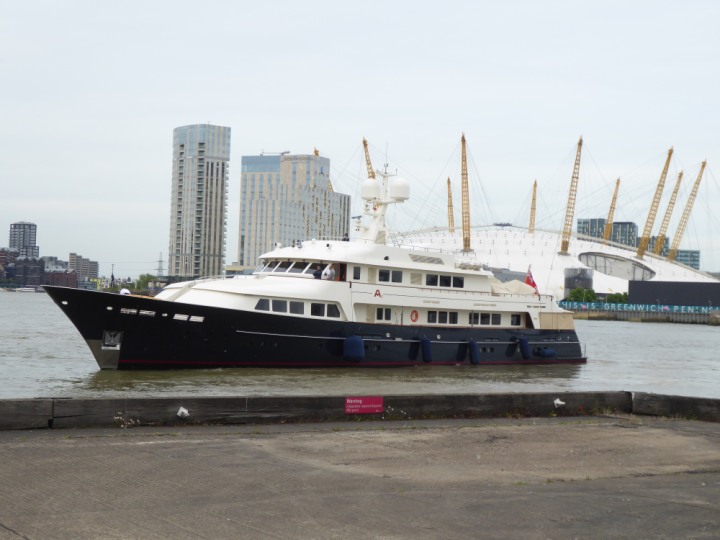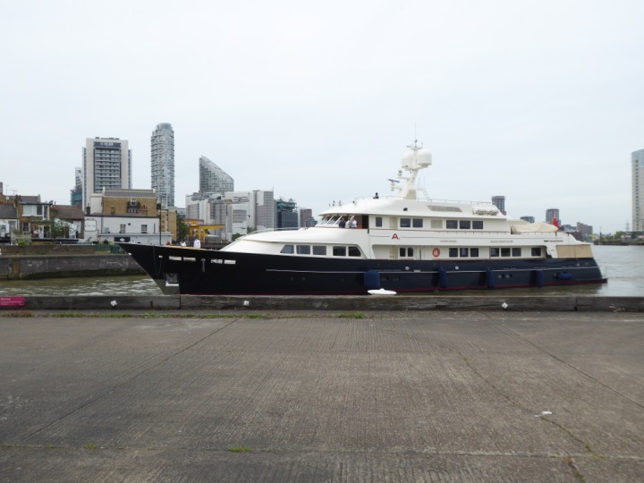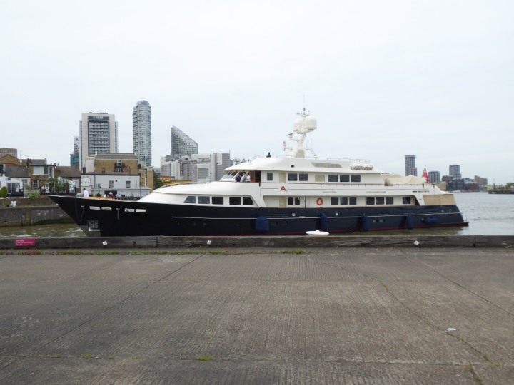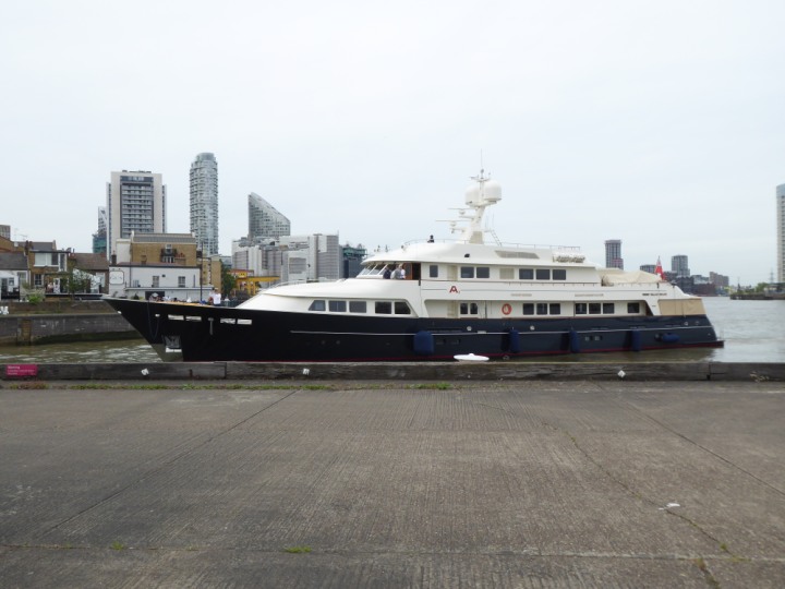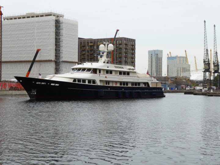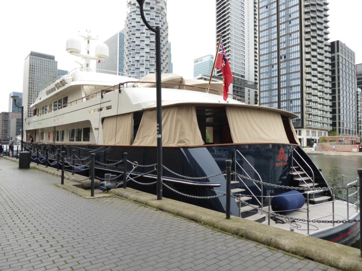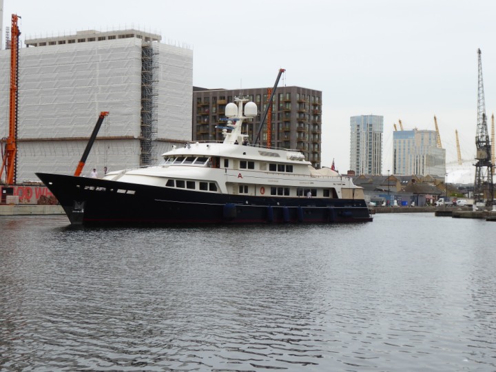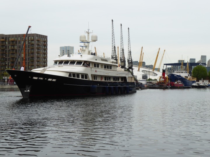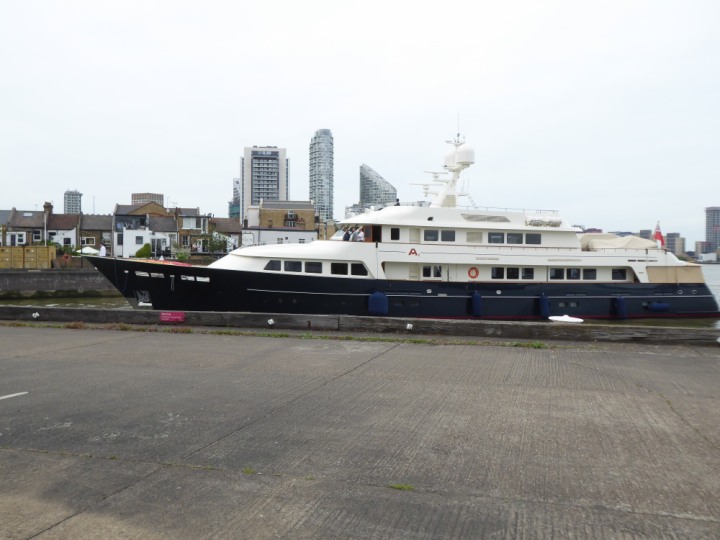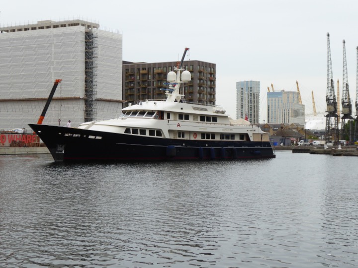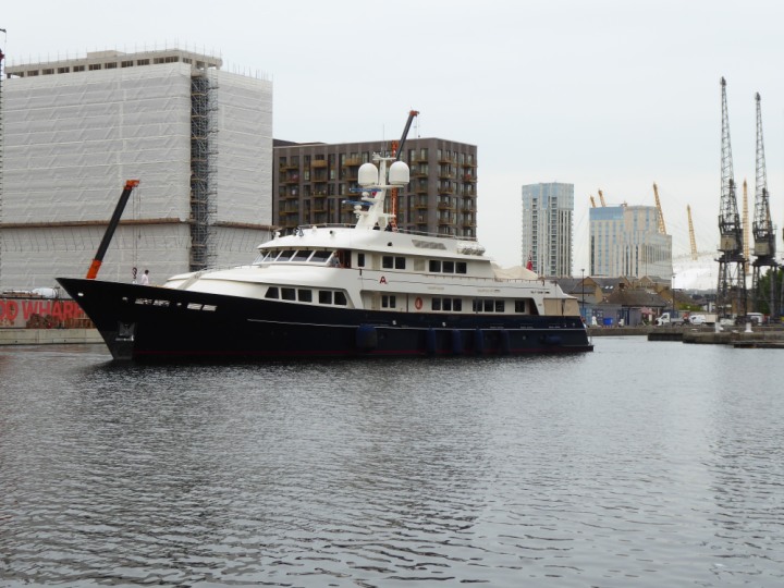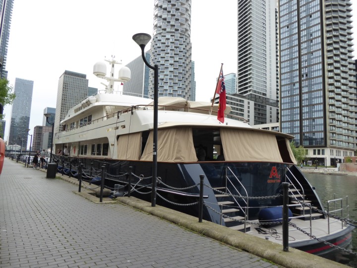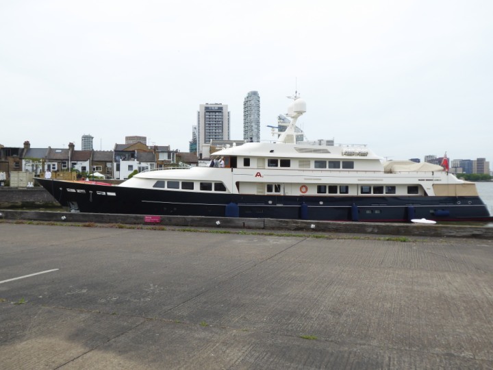 A2 *Click a Photo Above   once Big, click Right    Arrow in corner >   to start Slide Show * romagic .22 L:47.35x8.08m (155x26ft+) Friday 6th May 2022  16:44pm This  Super Yacht  was built in 1983 and is just under 50 mtrs  in length and 26ft wide, slightly  smaller than the newer yachts of today. Guests 12 in 6 staterooms and a crew of 9 in compact cabins,.. West India Dock