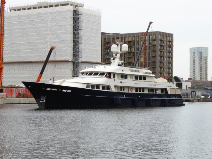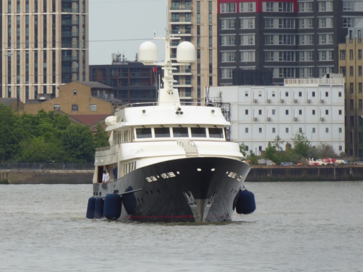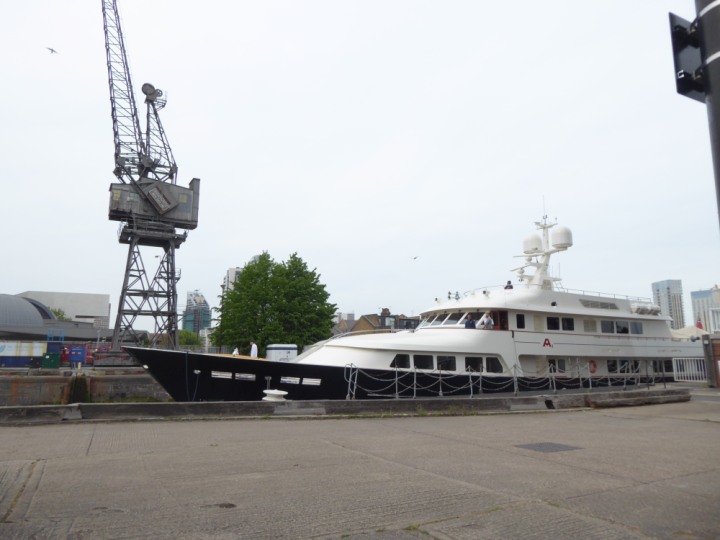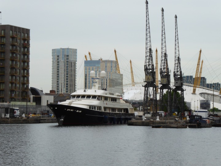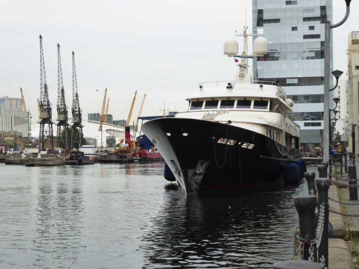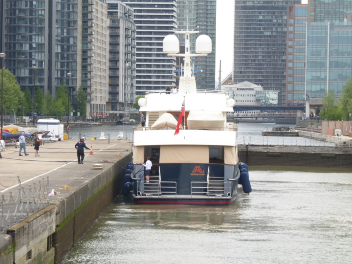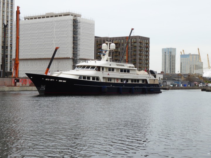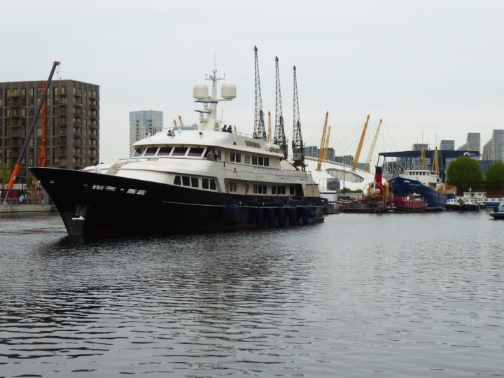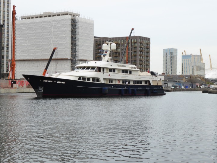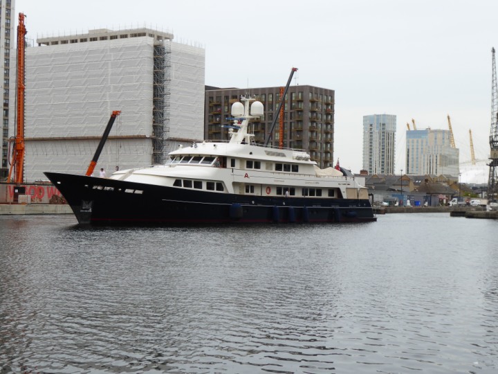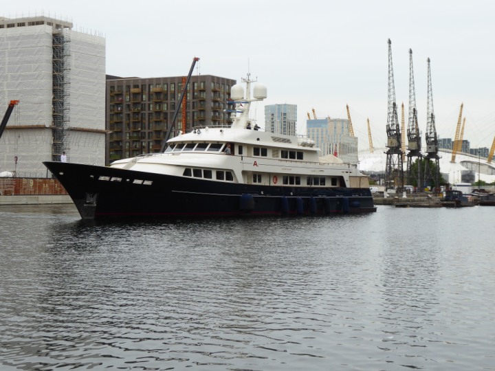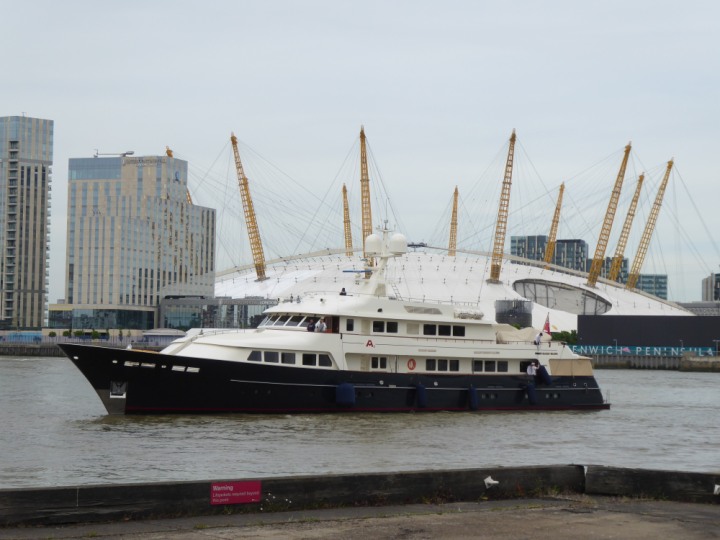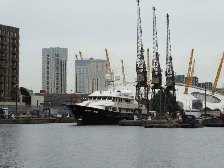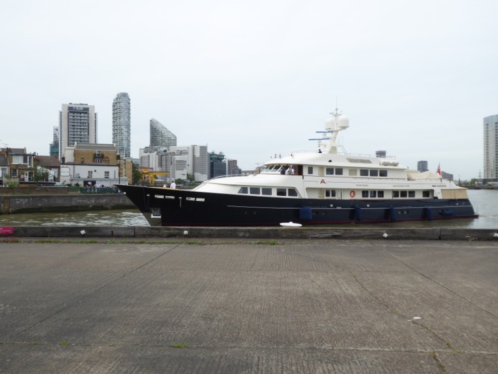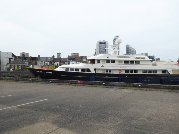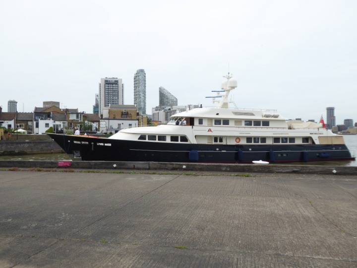 A2 *Click a Photo Above   once Big, click Right    Arrow in corner >   to start Slide Show * romagic .22 L:47.35x8.08m (155x26ft+) Friday 6th May 2022  16:44pm This  Super Yacht  was built in 1983 and is just under 50 mtrs  in length and 26ft wide, slightly  smaller than the newer yachts of today. Guests 12 in 6 staterooms and a crew of 9 in compact cabins,.. West India Dock