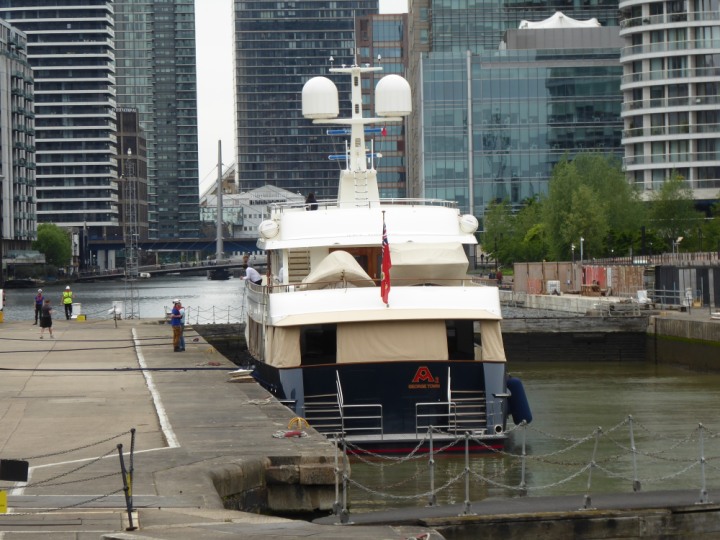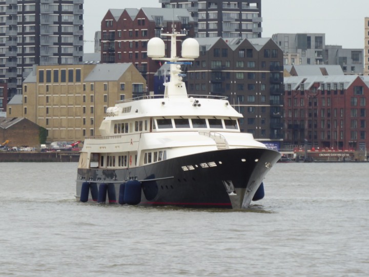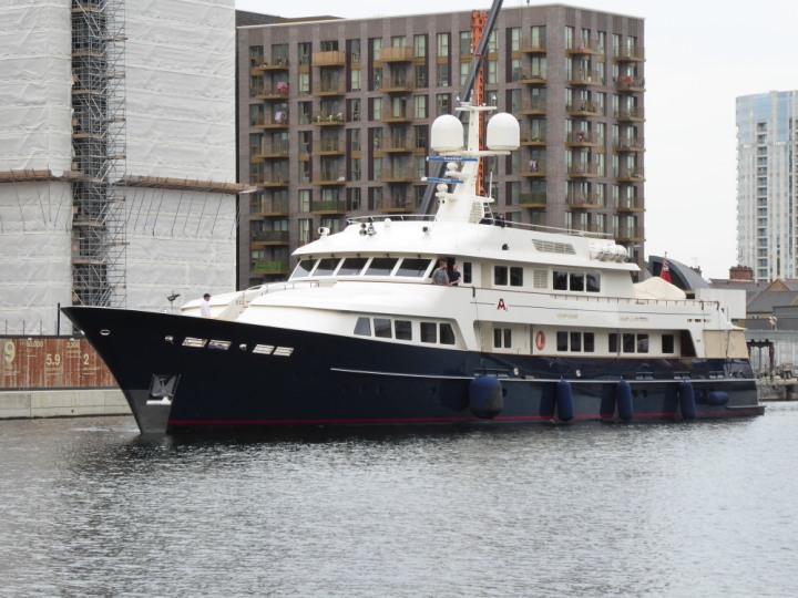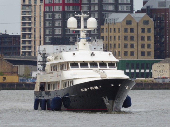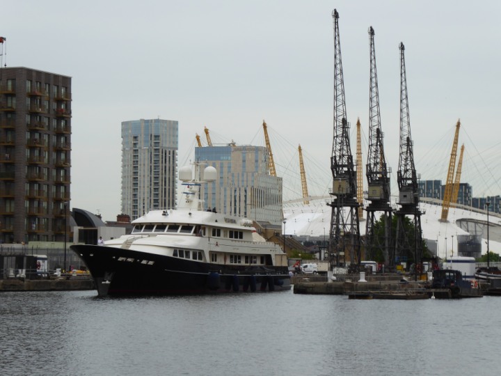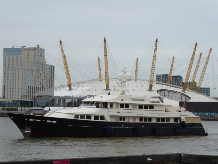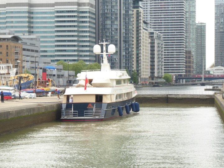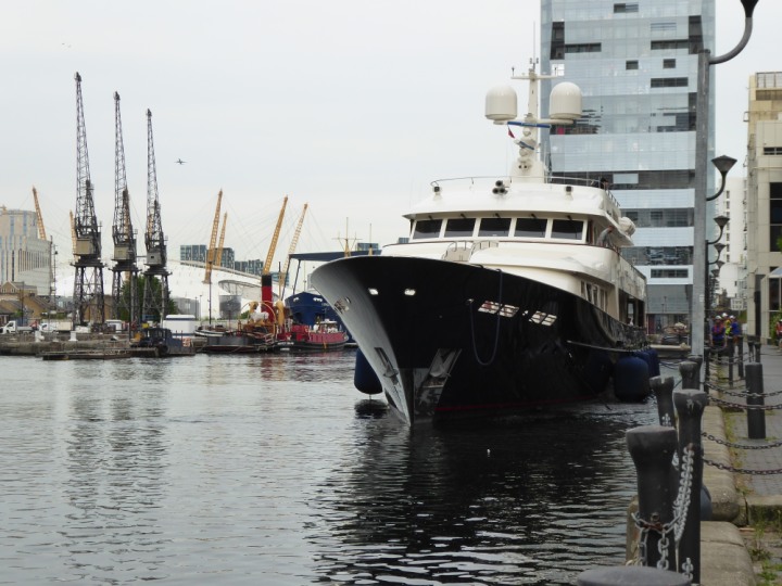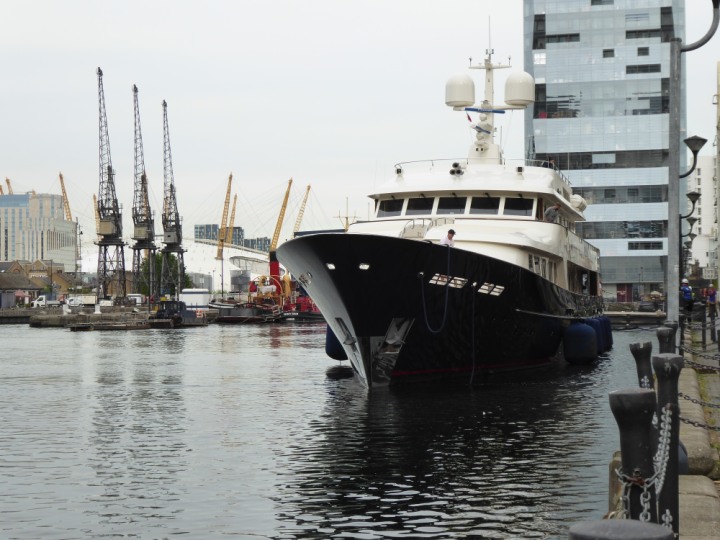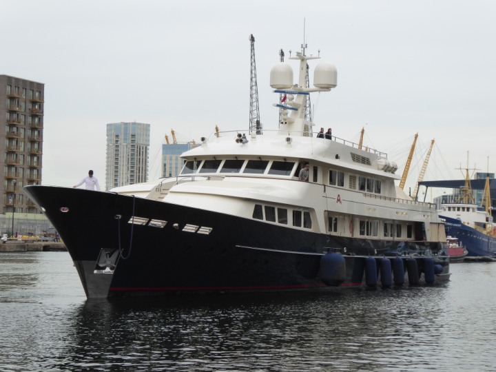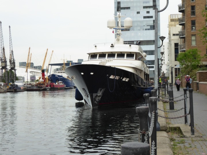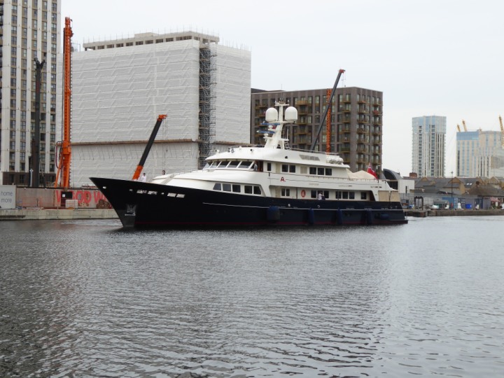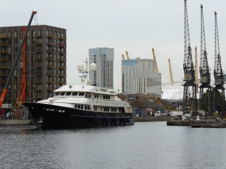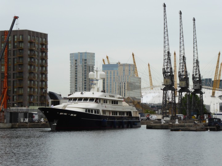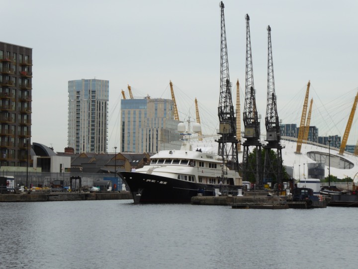 A2 *Click a Photo Above   once Big, click Right    Arrow in corner >   to start Slide Show * romagic .22 L:47.35x8.08m (155x26ft+) Friday 6th May 2022  16:44pm This  Super Yacht  was built in 1983 and is just under 50 mtrs  in length and 26ft wide, slightly  smaller than the newer yachts of today. Guests 12 in 6 staterooms and a crew of 9 in compact cabins,.. West India Dock