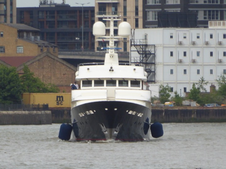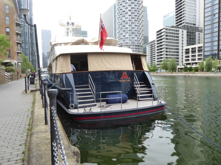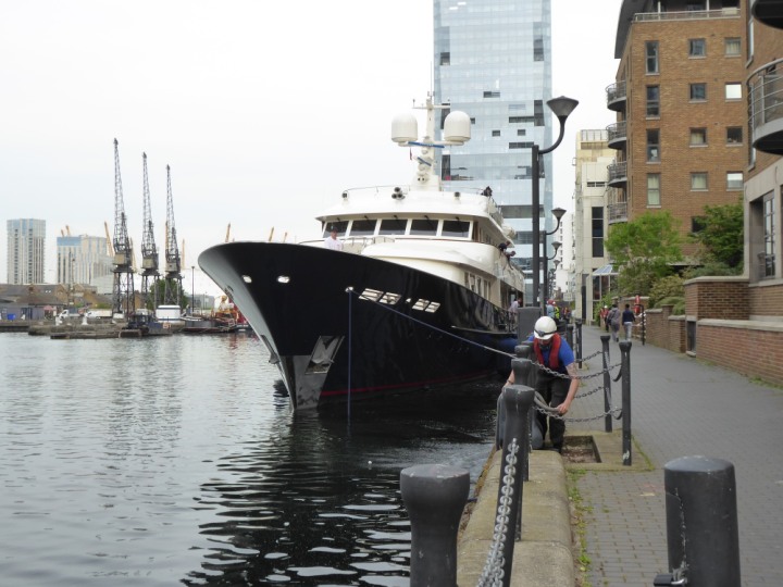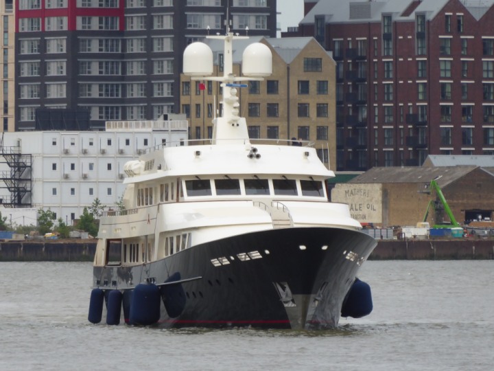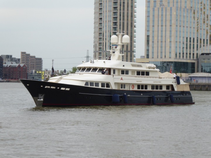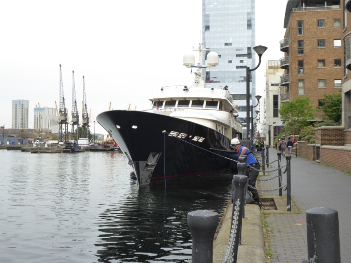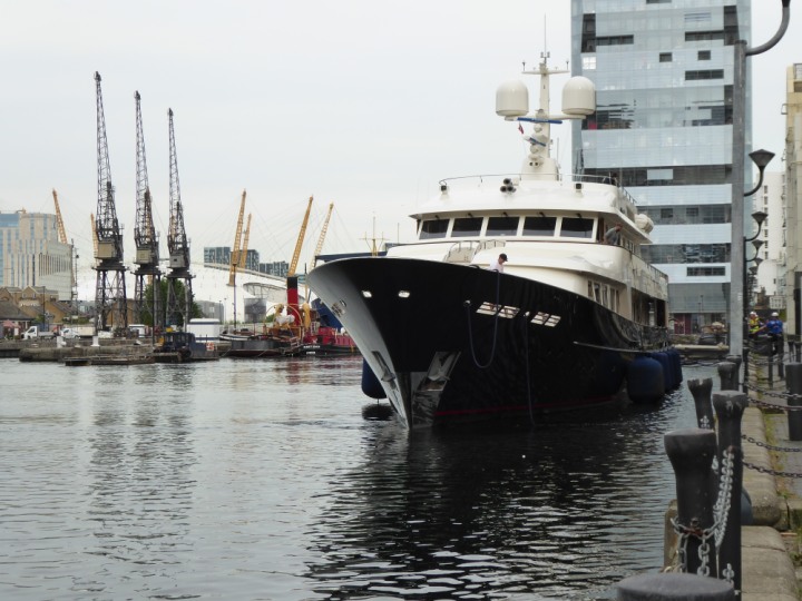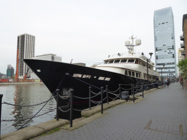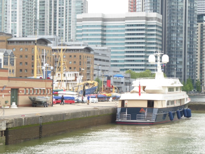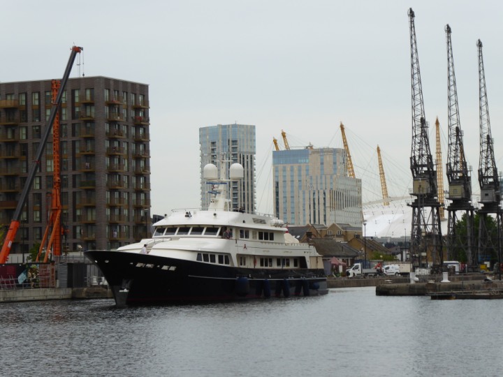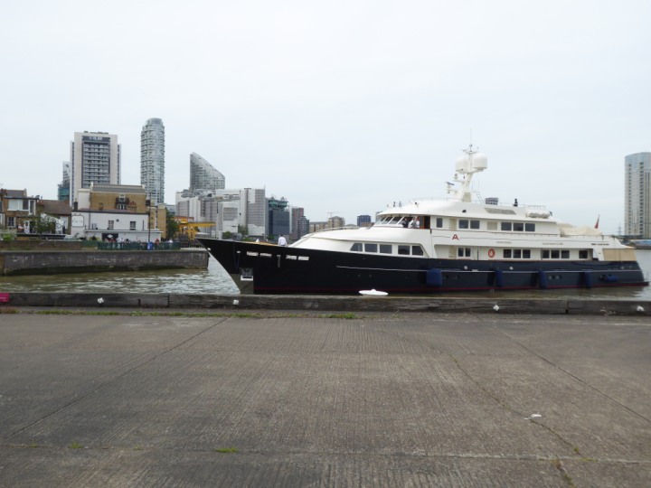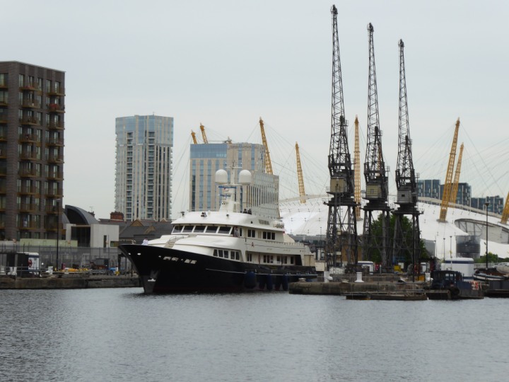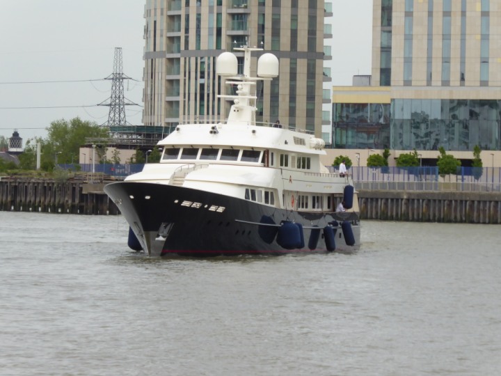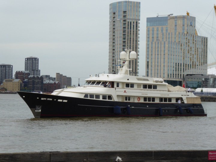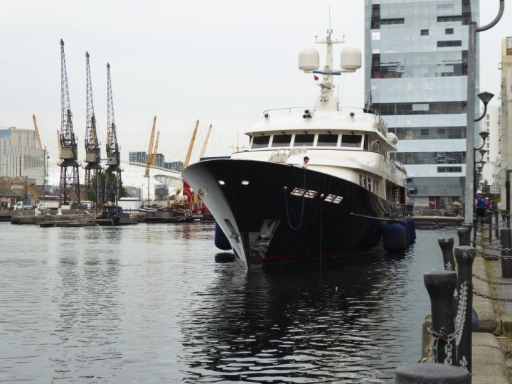 A2 *Click a Photo Above   once Big, click Right    Arrow in corner >   to start Slide Show * romagic .22 L:47.35x8.08m (155x26ft+) Friday 6th May 2022  16:44pm This  Super Yacht  was built in 1983 and is just under 50 mtrs  in length and 26ft wide, slightly  smaller than the newer yachts of today. Guests 12 in 6 staterooms and a crew of 9 in compact cabins,.. West India Dock