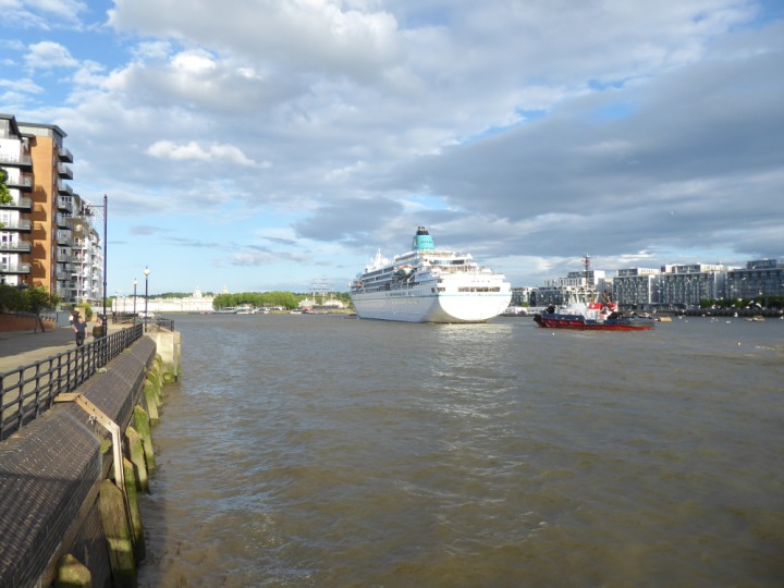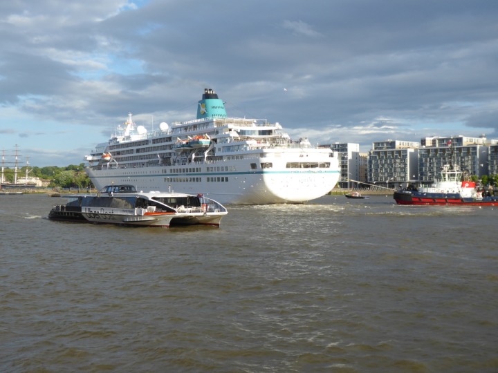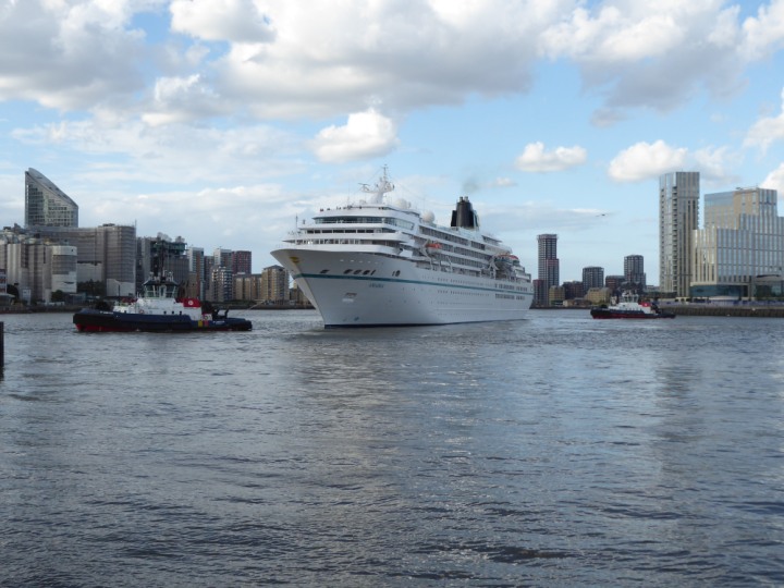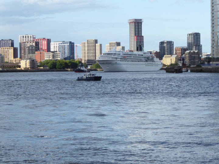 AMADEA *Click a Photo Above   once Big, click Right    Arrow in corner >   to start Slide Show * romagic .22 L:192 x24.7m (632x81ft+) Wednesday 8th June 2022 Two Tugs spun the Ship round at the 02 Dome, then sounded it’s loud horn’  that woke the  residents up.. then reversing back to Greenwich Tier, only staying 24 hours,   Departing, 9th at 8pm going out on the high tide.