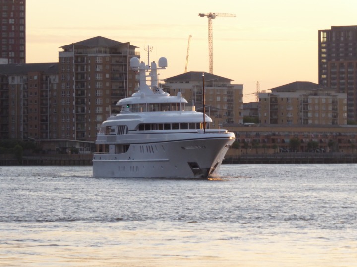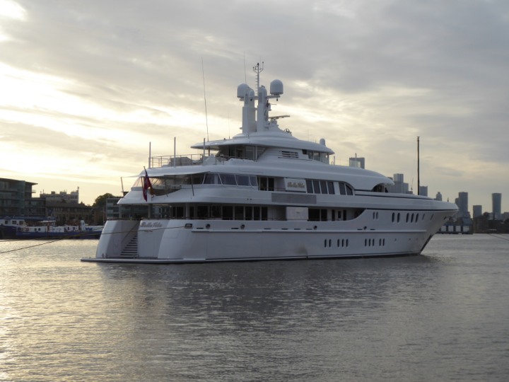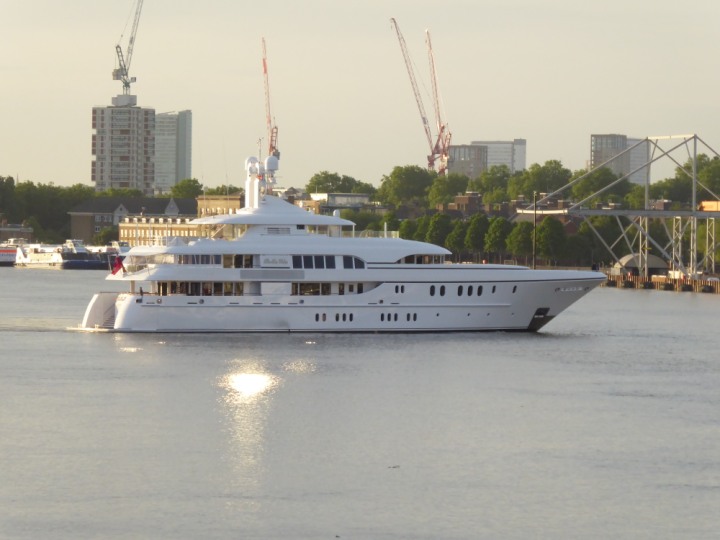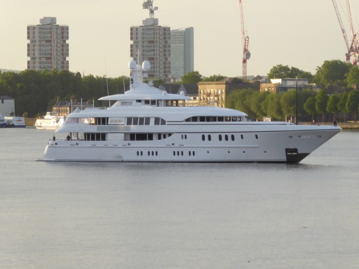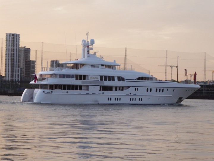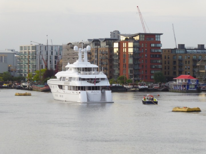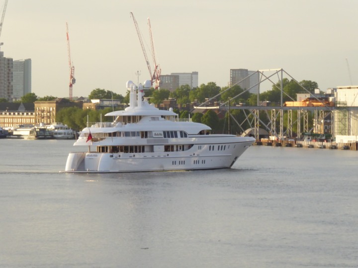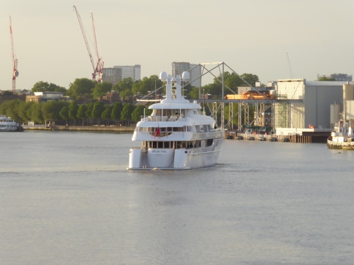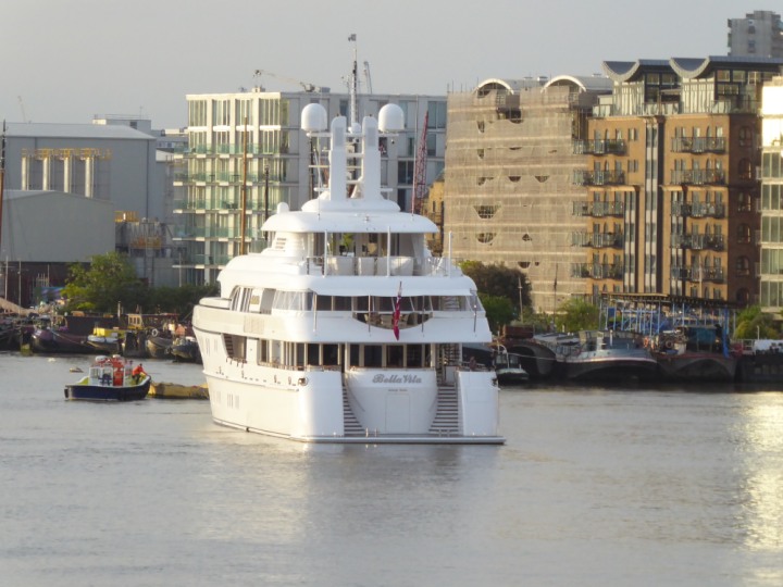BELLA VITA *Click a Photo Above   once Big, click Right    Arrow in corner >   to start Slide Show * romagic .22 Saturday 21st May 2022 Super Yacht  arrives 05:09 on the high tide just as the  sun rises. Staying at  'George's Stairs  opposite Tower Bridge for a few days. L:60x11.4m (196x37ft+) Built 2010 had a Refit 2021 Speed 15knots = 17mph + Guests 12 . Crew 15 ? American owner.. I was taking some photos  from  Tower Bridge, then  they decided to raise it for  a Sailing Barge to exit. Departure: 24th May  08:15