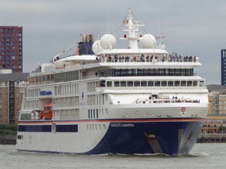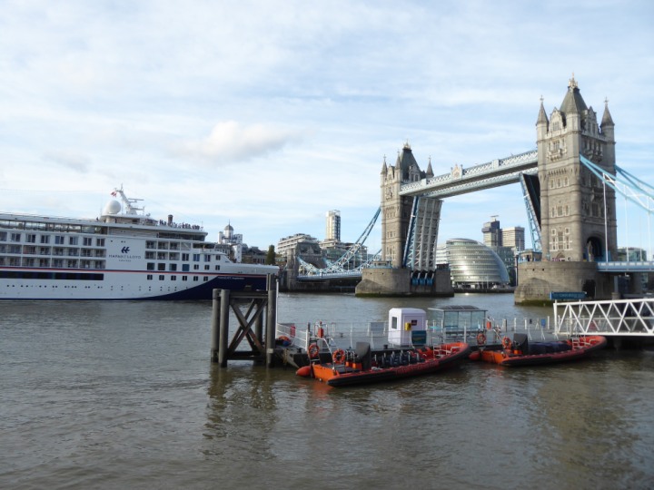 HANSEATIC INSPIRATION romagic.co .22 * L:138 x 22m(455x73ft+) Tuesday 4th October 2022 Cruise Ship on it's way to Tower Bridge. Lift 9:15am and will  moor alongside the HMS BELFAST. Built 2019 and it's a similar  size to other Ships that are in the HANSEATIC fleet. Short stay leaving next day 21.00pm *Click a Photo Above   once Big, click Right    Arrow in corner >   to start Slide Show   or Fast F/FW  > Possibly the last Cruise Ship here in London till next year, normally arrive from April to late September.
