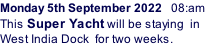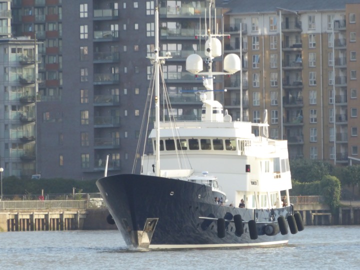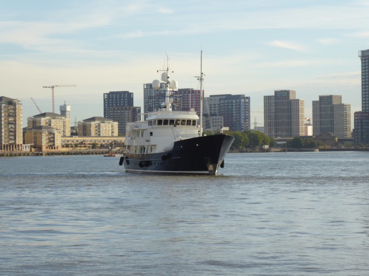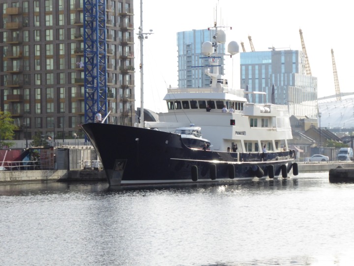 PIONEER romagic .22 *Click a Photo Above   once Big, click Right    Arrow in corner >   to start Slide Show   or Fast F/FW  > * L:46x8.81m (151x28ft+) Monday 5th September 2022   08:am This Super Yacht will be staying  in  West India Dock  for two weeks. Built 1996   26 years, over that time has had some name changes and a complete refit not too long ago. Departure: Wednesday 28 September.