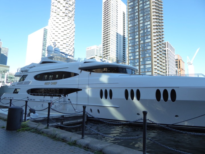 REEF CHIEF .22 romagic .22 *Click a Photo Above   once Big, click Right    Arrow in corner >   to start Slide Show   or Fast F/FW  > * L:49.9x8.53m (161x27ft+) Thursday 22 September 2022 Super Yacht returns to London back in West India Dock Last here: 20 June 2018