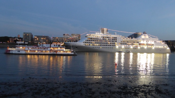 SILVER WHISPER .22 romagic .22 * Greenich Tier Terminal *Click a Photo Above   once Big, click Right    Arrow in corner >   to start Slide Show L:186x24.8m (610x81ft+) Wednesday 15th June 2022 Cruise ship arrives 02.17am at Greenwich Tier.  Staying 24 Hours leaving at  02.00 am Thursday. I didn't get it's arrival, but  did take some Photos late evening at Low Tide. Refueller boat was along  side.  Now getting dark   so these are the best pics  I could get SILVER WHISPER Last Here  18 May 2019