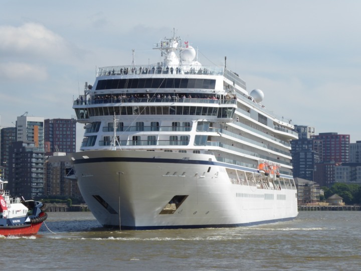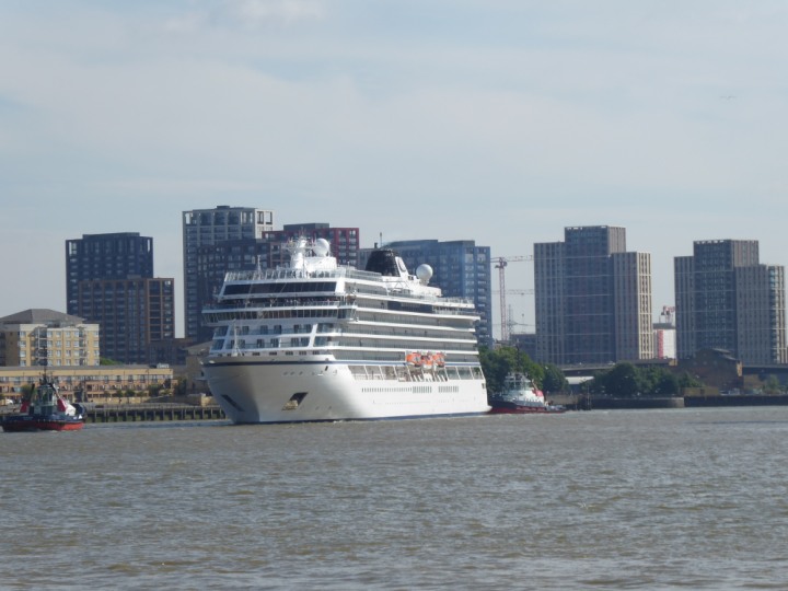 VIKING MARS romagic .22 *Click a Photo Above   once Big, click Right    Arrow in corner >   to start Slide Show * Greenwich Tier L:229x32m (751x104.ft+) VIKING MARS Friday 24th June 2022   09:09am As most  times the Ship is spun round at the 02 Dome, reversing back to Greenwich Tier. Built 2022   This new Ship is  slightly smaller than the other Ships of the Viking Fleet. Departure  Sunday 26   23:59